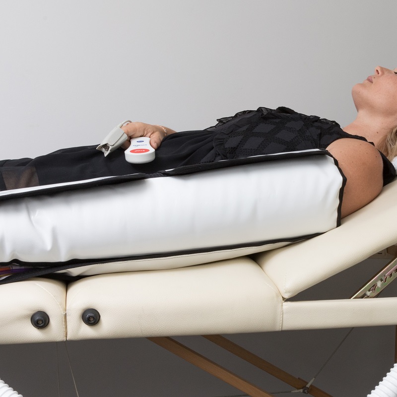 J’ai une patiente qui n’a eu aucun souci pendant quinze ans, puis dont le bras a gonflé du jour au lendemain. Avec elle, j’utilise le manchon du bras et j’alterne des séances plus globales avec le pantalon pour obtenir une combinaison d’effet localisés et plus généraux.